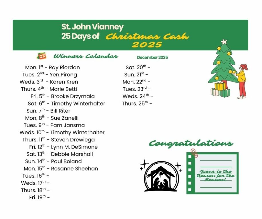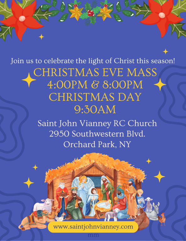We are a Roman Catholic community. We are inspired by the example of St. John Vianney to build up the Body of Christ. We are fed by the Word and Sacraments to proclaim the Good News of Jesus, to serve one another as Jesus did, and to invite others to join us in the mission of Christ.