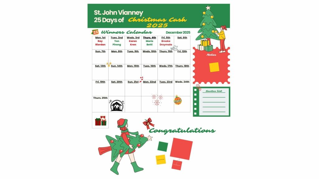 We are a Roman Catholic community. We are inspired by the example of St. John Vianney to build up the Body of Christ. We are fed by the Word and Sacraments to proclaim the Good News of Jesus, to serve one another as Jesus did, and to invite others to join us in the mission of Christ.